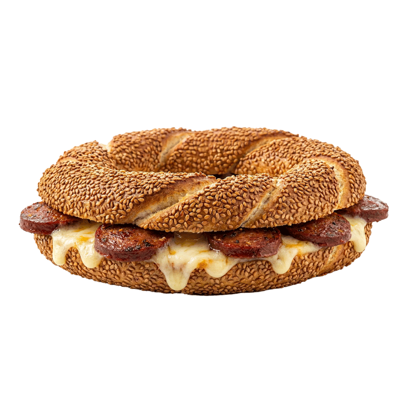 İçindeki erimiş yoğun cheddar peynirinin özgün aroması ve simidin çıtır dokusuyla birleşen modern bir lezzet deneyimi.